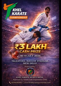 Register as team register as individual Organised by Khel Karate Sports India Approved by Karate India Organisation (KIO) Date 18–19 July 2026 Venue Talkatora Stadium, Delhi Prize Pool ₹3 Lakh…